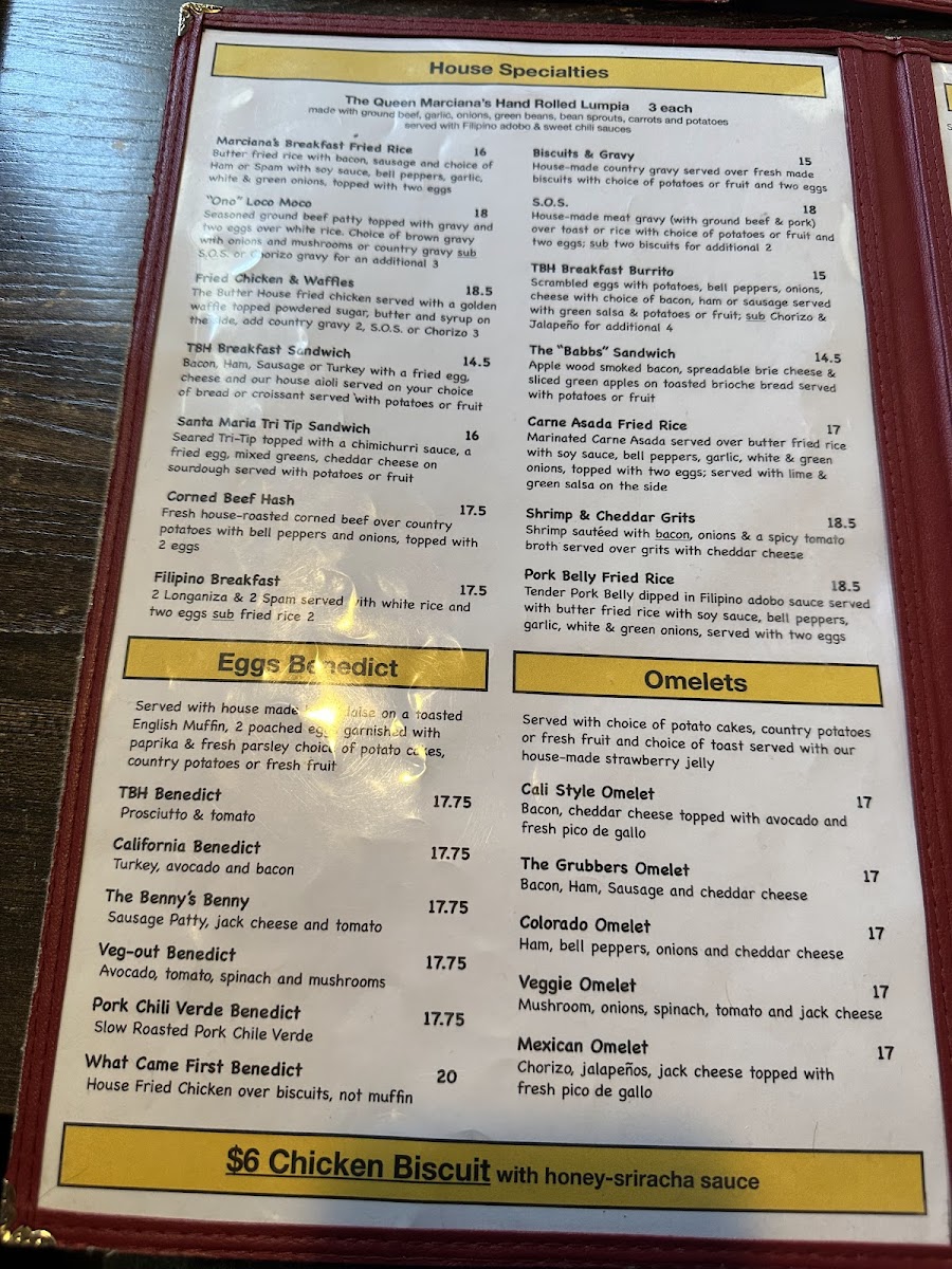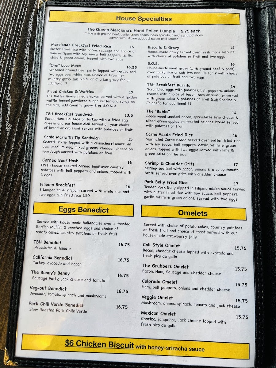 Whether you're in the mood for a rich, buttery pancake stack or a savory sandwich bursting with fresh ingredients, each dish is made with care and attention to detail. The flavors are comforting yet exciting, combining classic favorites with new, creative ideas. Pair your meal with a refreshing drink or enjoy one of their signature sides for a truly satisfying experience. Come in, relax, and enjoy the warmth and charm that The Butter House Menu brings to the table.